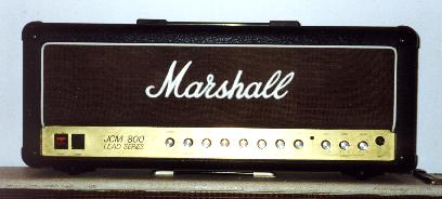I can be playing Jazz one second, and with the push of a button be playing the nastiest metal there is. The amp will play any type of rock, from Zeppelin to Metallica. If you have one of these amps you know what's up -- Marshall stopped making the JCM 800's in the late 80's, making them a little hard to find. This head unit is the ultimate powerviolence brewpot. It gets loud as shit; You can't turn it past 5 when running thru a 4x12 cab. With two cabs, it's a religious experience. There is not that much hum at high volumes. The distortion is actually pretty versatile, you can realistically get whatever sound you want if you work at it. The distortion is very brutal, but without stepping into nuclear meltdown conditions. If you play metal/punk/hardcore, this has enough scooped-mid chunk tolevel buildings. Specs: Probably weighs about 30-50 lbs, 100 Watts 5 12ax7 preamp tubes 4 EL-34 poweramp tubes (and one HUGE transformer). Speaker Ohm Selector Switch: 4, 8, 16 Voltage Switch: 115, 220, 240. 2 Speaker Outputs, Effects Loop, and Direct Line Out Jack. Knobs on front: Prescence, Master Volume, Bass, Mid,Trebble, Gain, Reverb (Spring), Boost Volume, Clean Volume Clean Bass, Clean Trebble. Also Power and Standby.